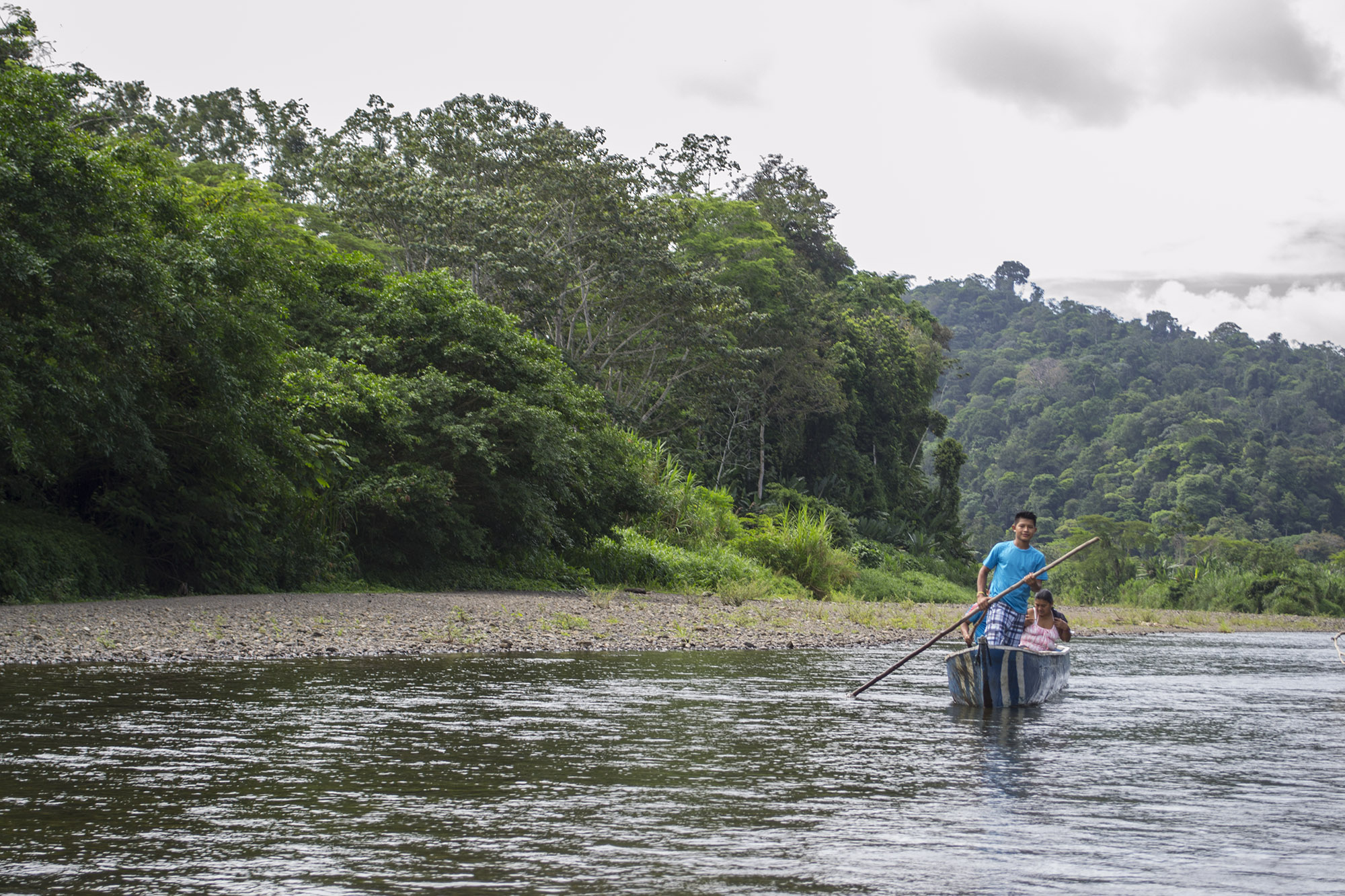The adventure begins in Bambú, where you will travel upriver along the Yorkín River in a traditional canoe. As you glide through the water, admire the lush rainforest vegetation and the impressive Panamanian mountain range surrounding you.